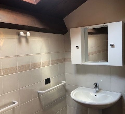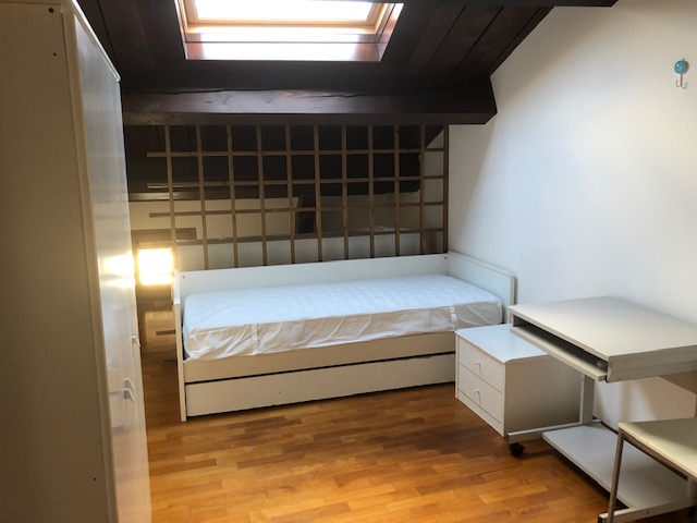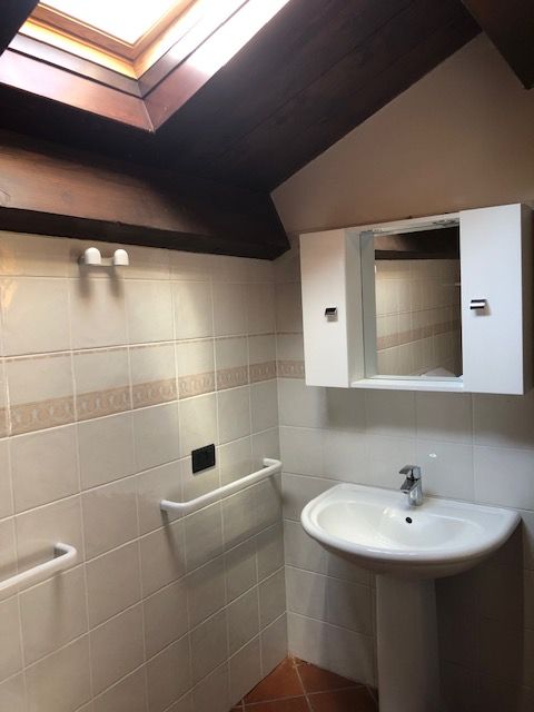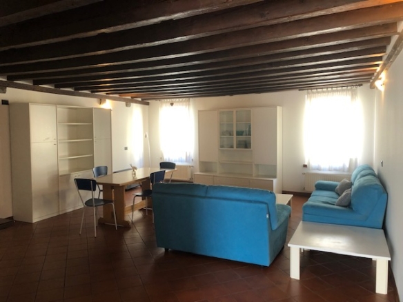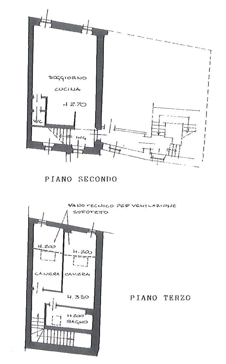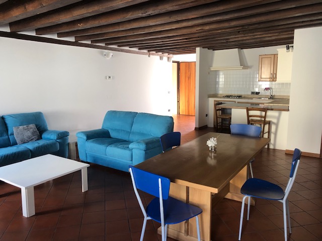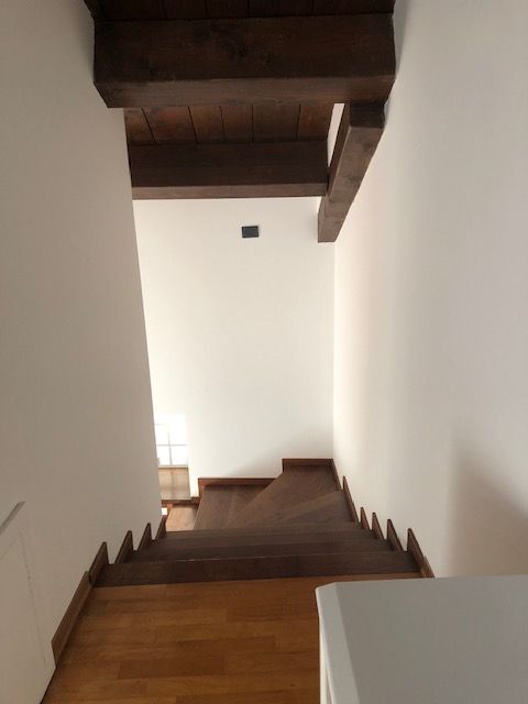 L’appartamento, situato al 2° piano senza ascensore, è così composto: ingresso, ampia zona giorno con cucina a vista, antibagno e bagno di servizio non finestrato. Una bellissima scala in legno conduce al piano superiore dove troviamo: camera matrimoniale, camera singola e 2° bagno con vasca.
