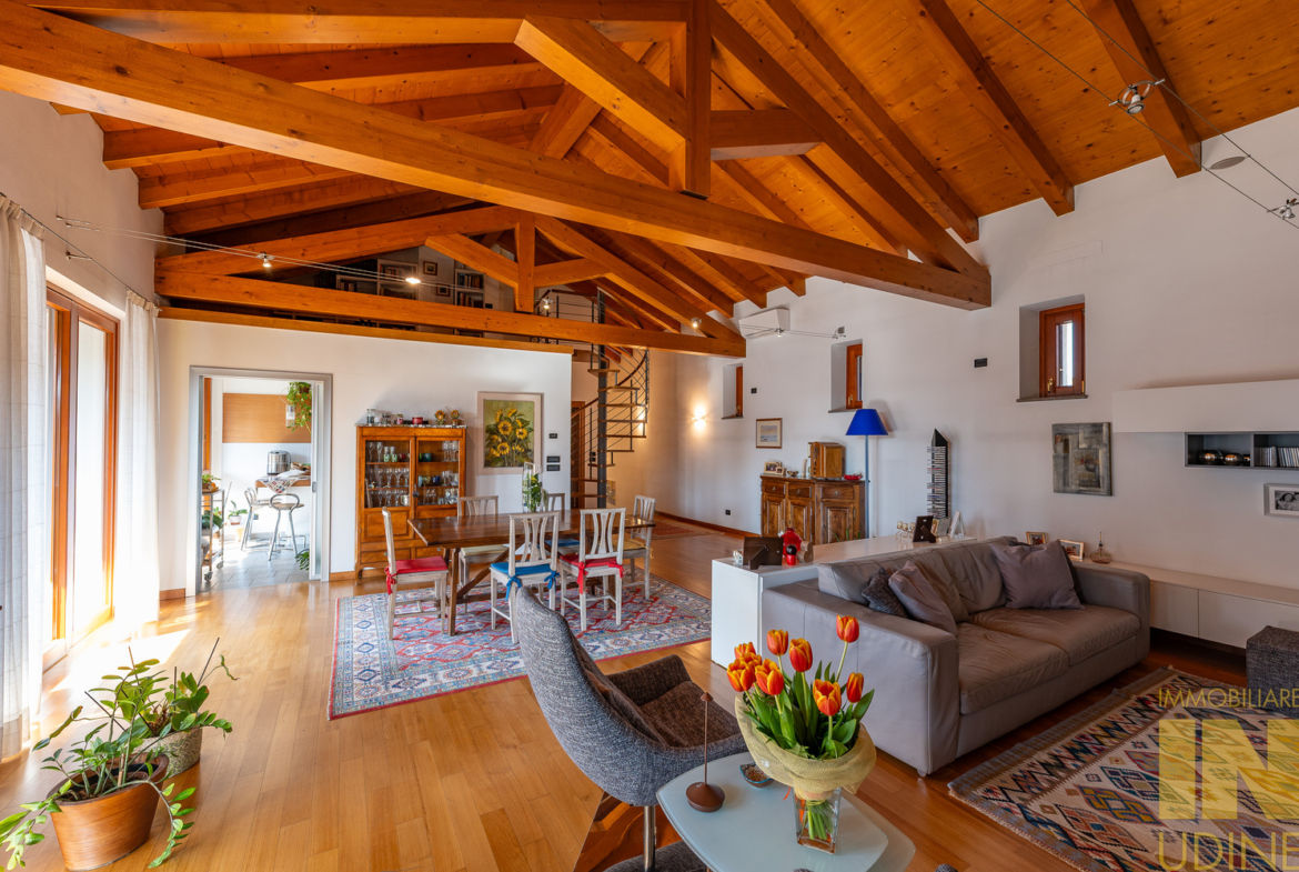 Cussignacco – A pochi passi dalla piazza proponiamo in vendita un affascinante casale sapientemente ristrutturato nel 2006, dal quale sono state realizzate due unità abitative con relative pertinenze e giardino.