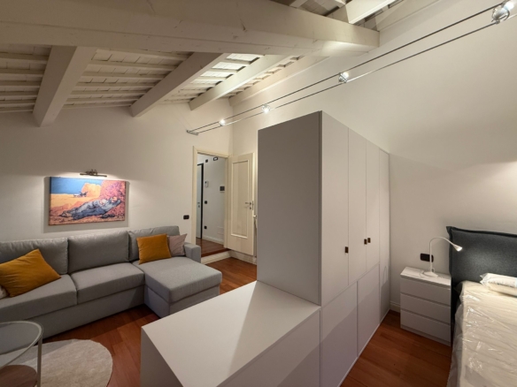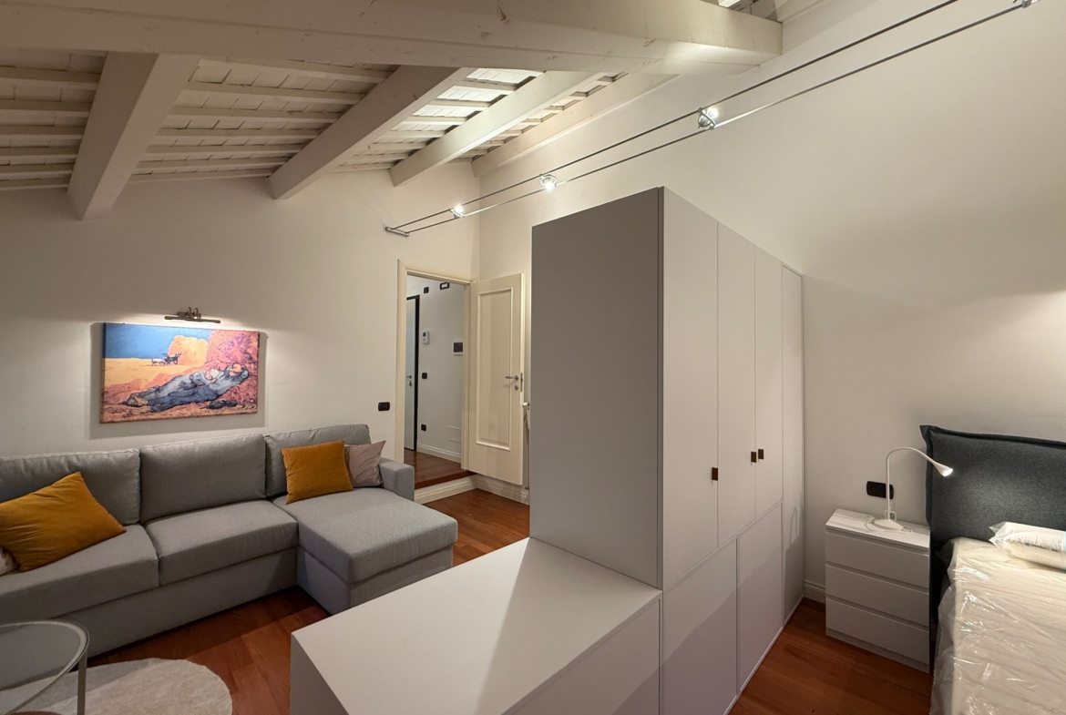 Nel cuore del centro storico della città, all’interno di un prestigioso palazzo d’epoca, affascinante mansardina con piacevole affaccio su Piazza San Giacomo.