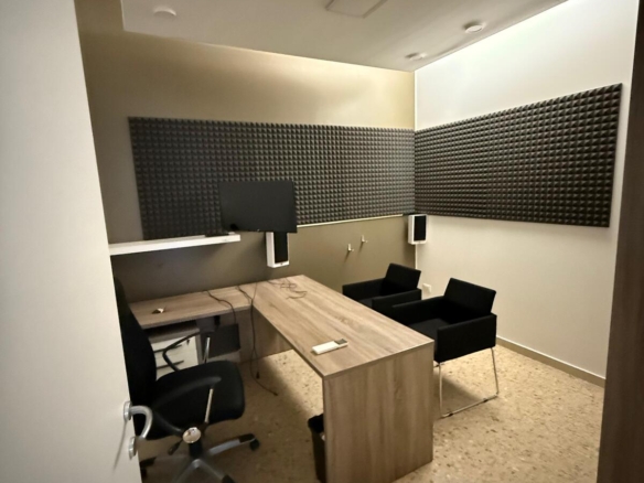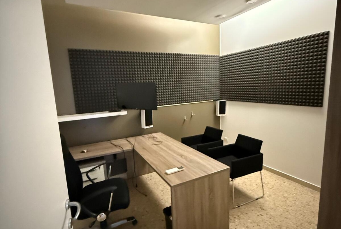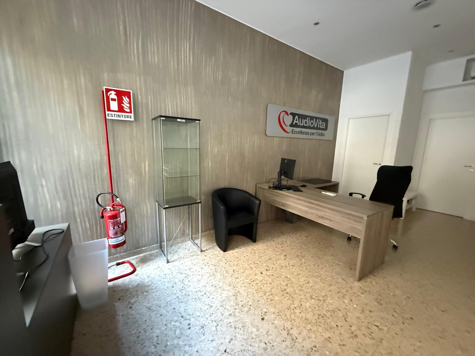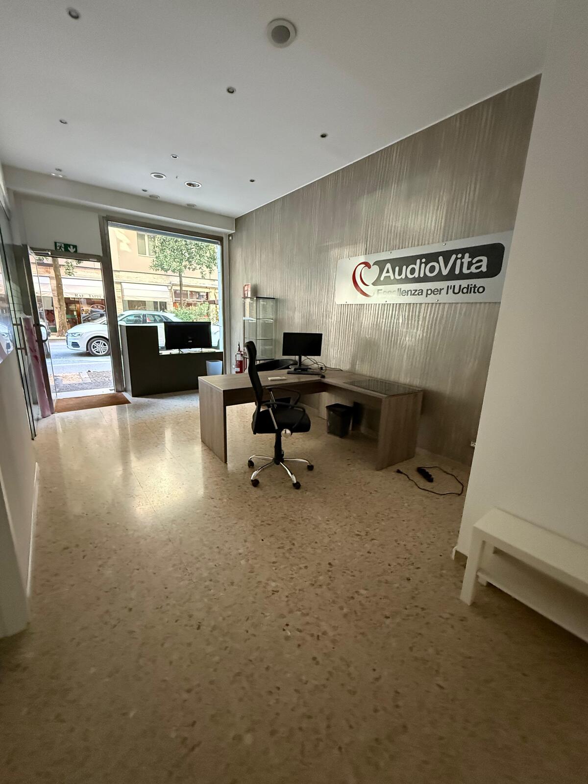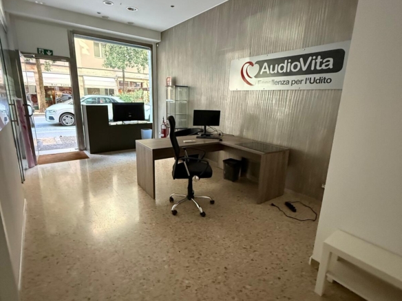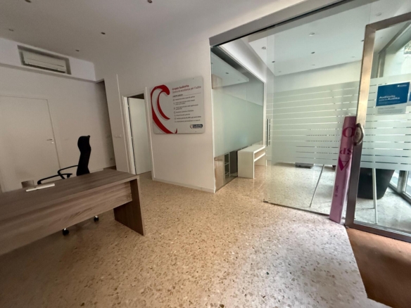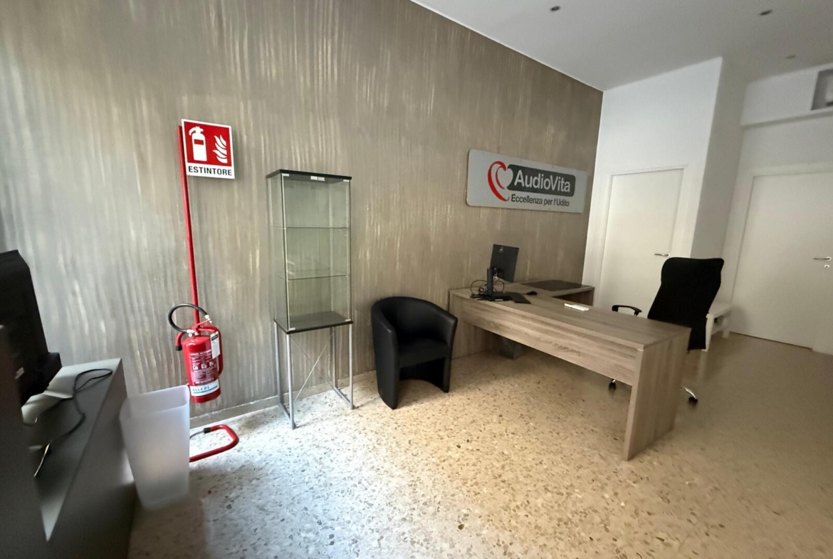 L’interno si compone di un ampio vano/reception, una sala d’attesa, due uffici e una zona ripostiglio con bagno di servizio, oltre a un comodo scantinato ad uso deposito.