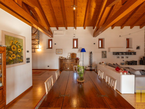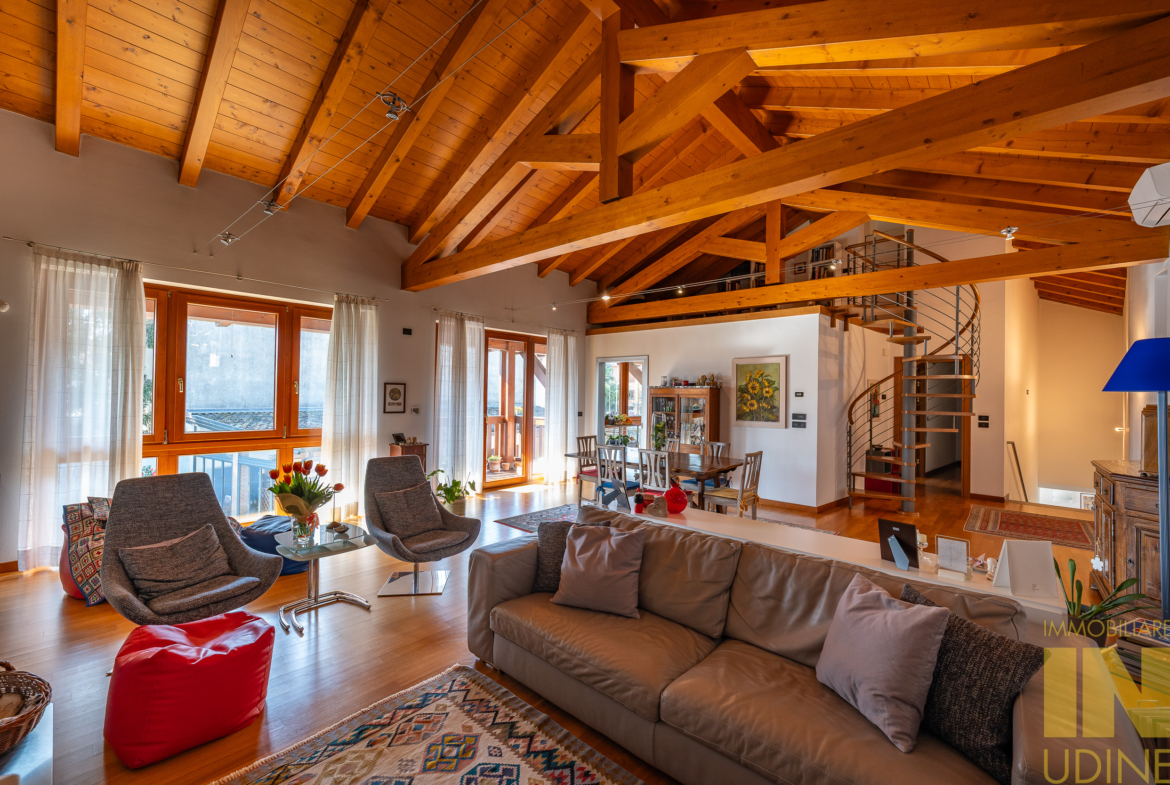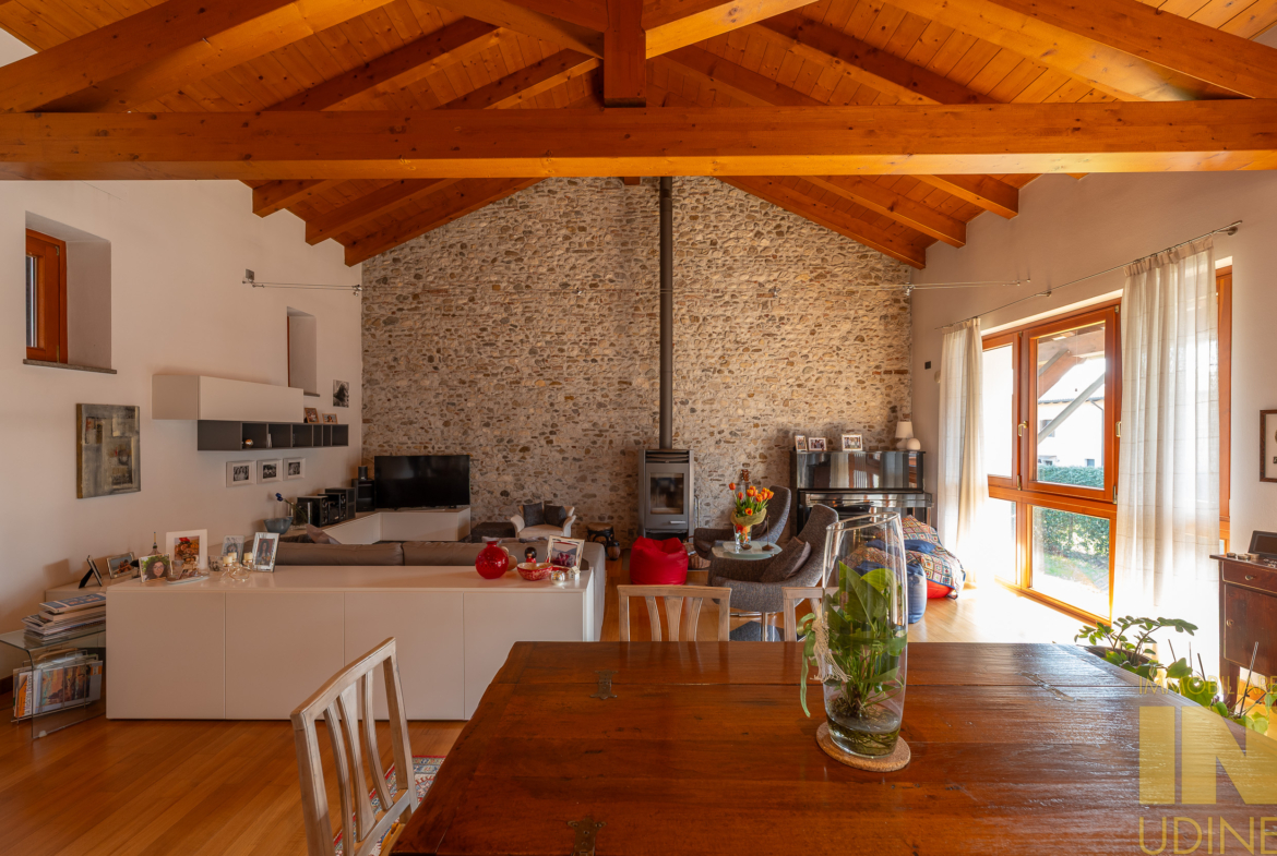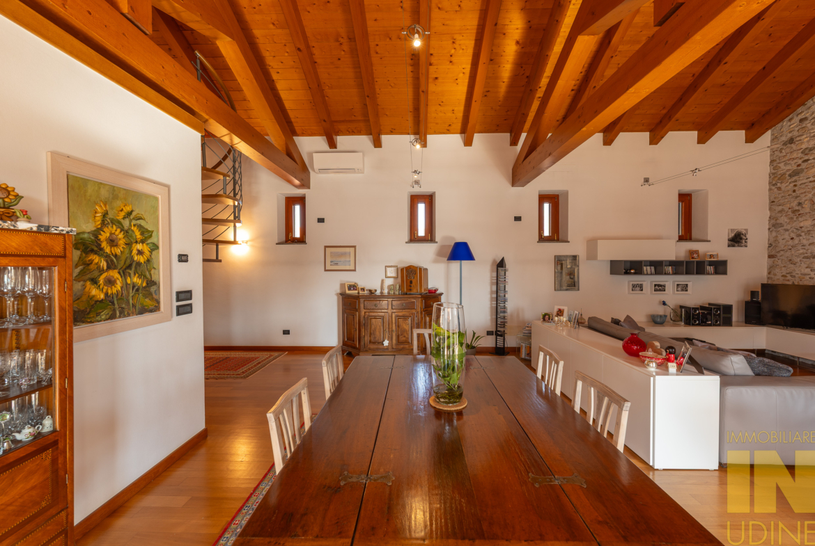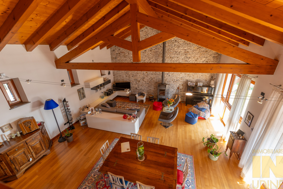 Cussignacco… a pochi passi dalla piazza proponiamo in vendita un affascinante casale sapientemente ristrutturato nel 2007 creando due unita’ abitative con relative pertinenze e giardino. Il primo appartamento tricamere biservizi di 130 mq si sviluppa al piano terra. Il secondo appartamento di 300 mq regala grandi emozioni . Dal piano terra sia accede ad un ampio ingresso con vestiere e zona lavanderia , una scala di pietra ci porta nella zona giorno dove troviamo la cucina e il  soggiorno , vero pezzo forte del casale !  Ampio , caloroso  . pieno di luce….  Nella zona notte troviamo la camera padronale col suo bagno , due camere doppie e un ulteriore  bagno . Al secondo piano infine la zona ospiti con uno studio , camera mansardata  e bagno.