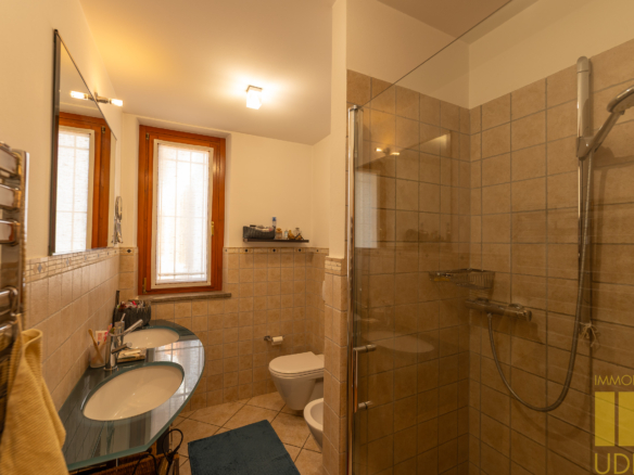 Completa la propieta’ un ampio porticato con vetrate ideale per accogliere gli ospiti nella bella stagione , una stanza bricolage  , doppio garage e posto auto coperto . Il giardino e’ recintato e curatissimo ! Le due unita’ hanno riscaldamento a pavimento , impianto fotovoltaico e climatizzatore ! Finiture curate, cura nei dettagli , spazi generosi rendono questo immobile una vera occasione ! Ulteriori info presso ns ufficio