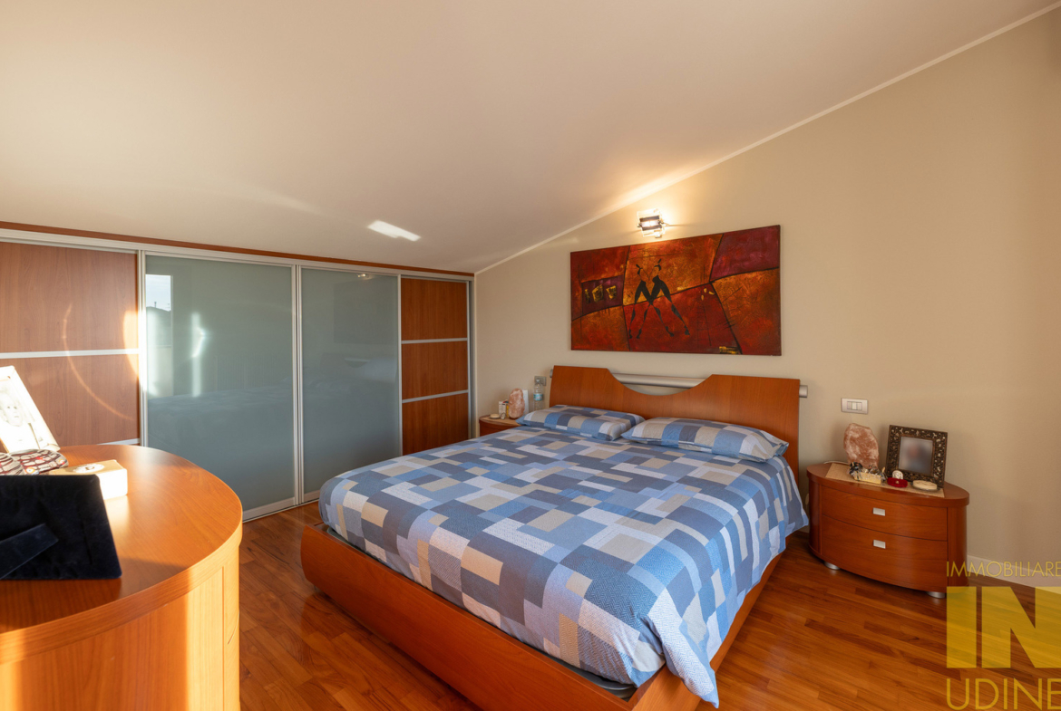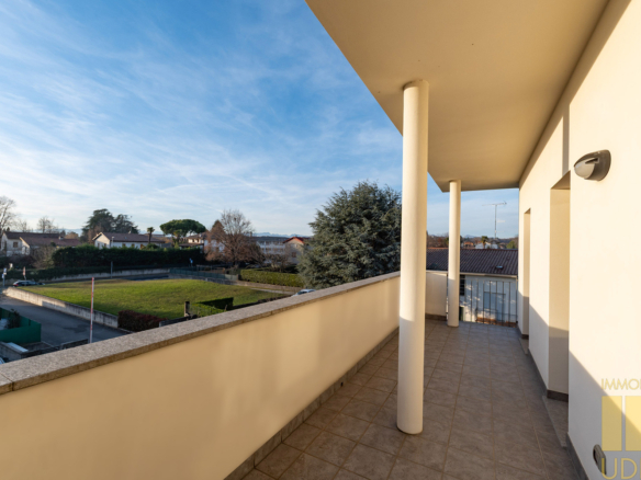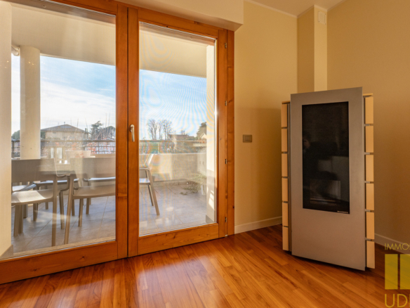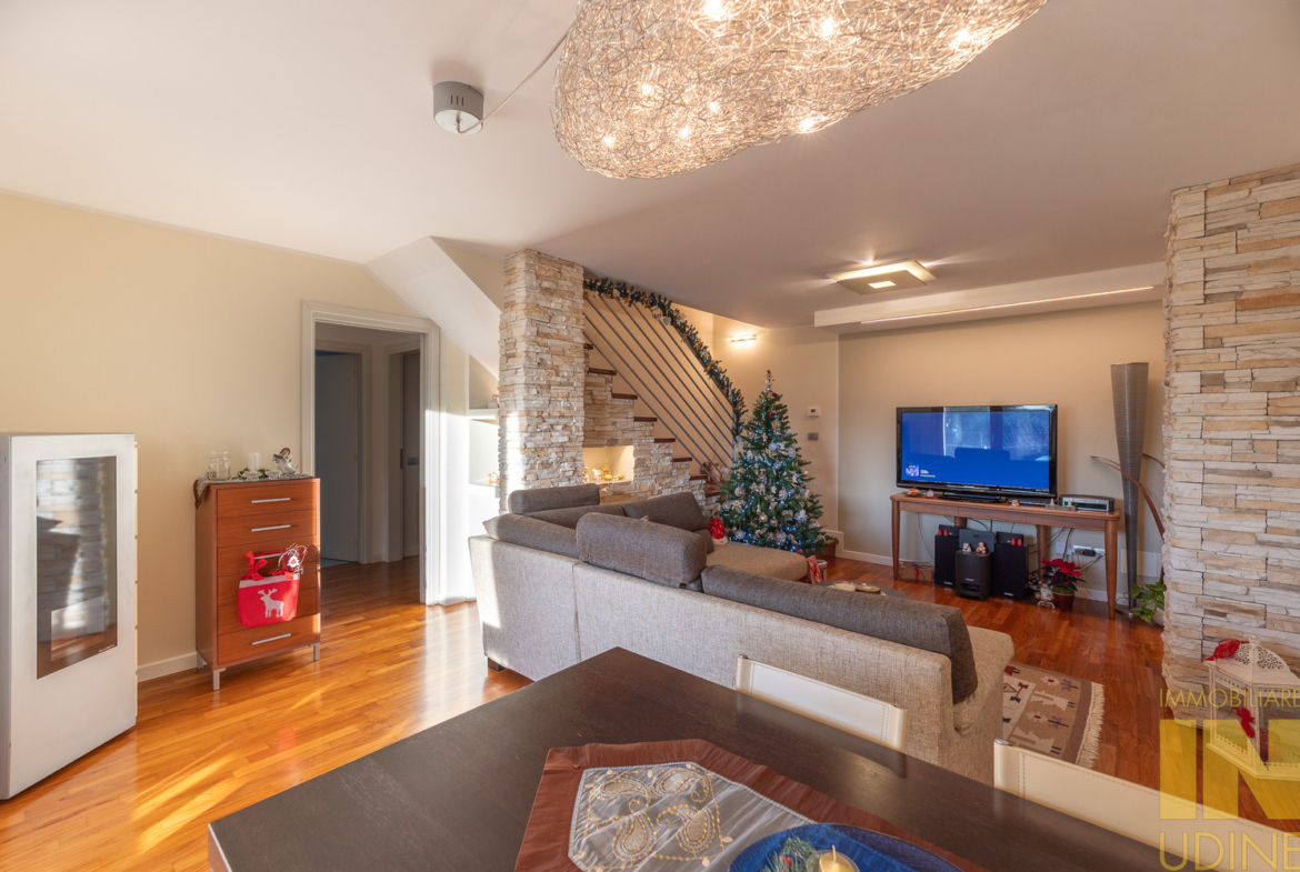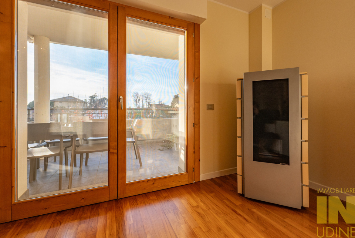 In elegante e riservato residence a pochi passi dal centro di Martignacco, appartamento bilivello dei primi anni 2000 pari al nuovo, con terrazza abitabile, cantina, doppio garage e posto auto scoperto di proprietà.