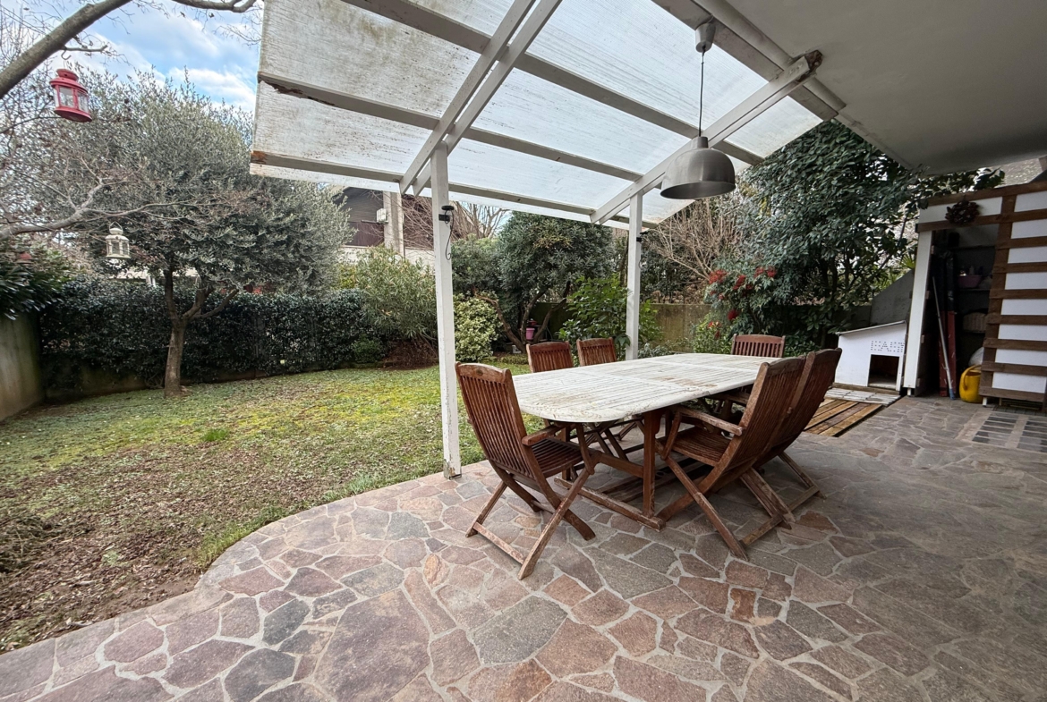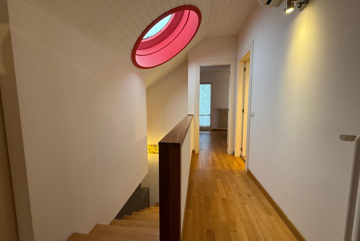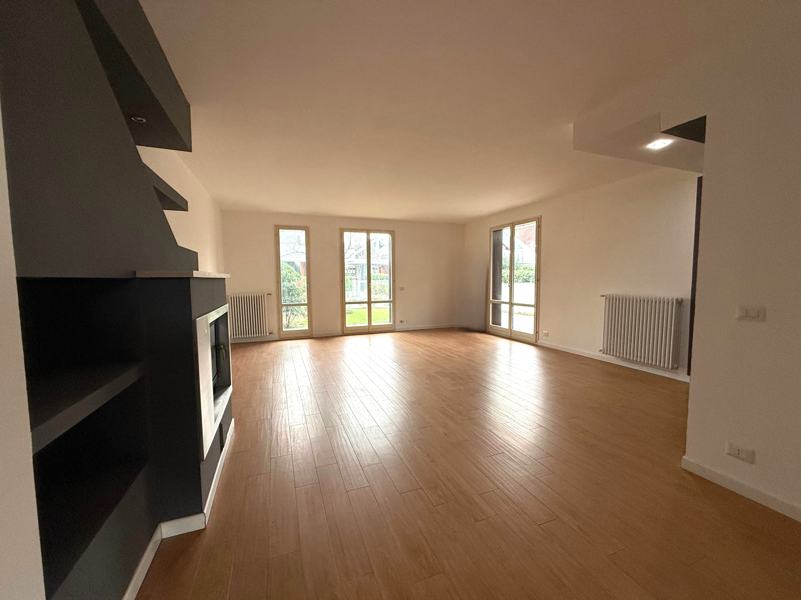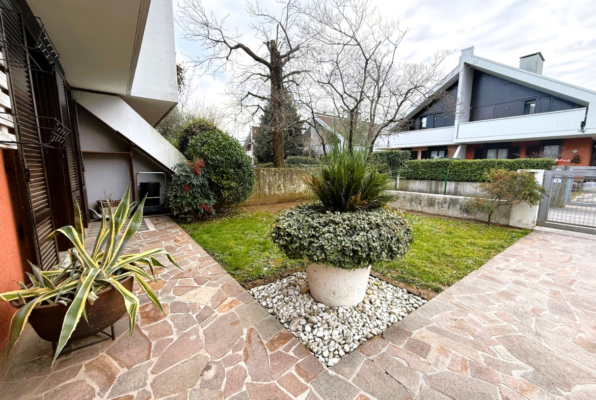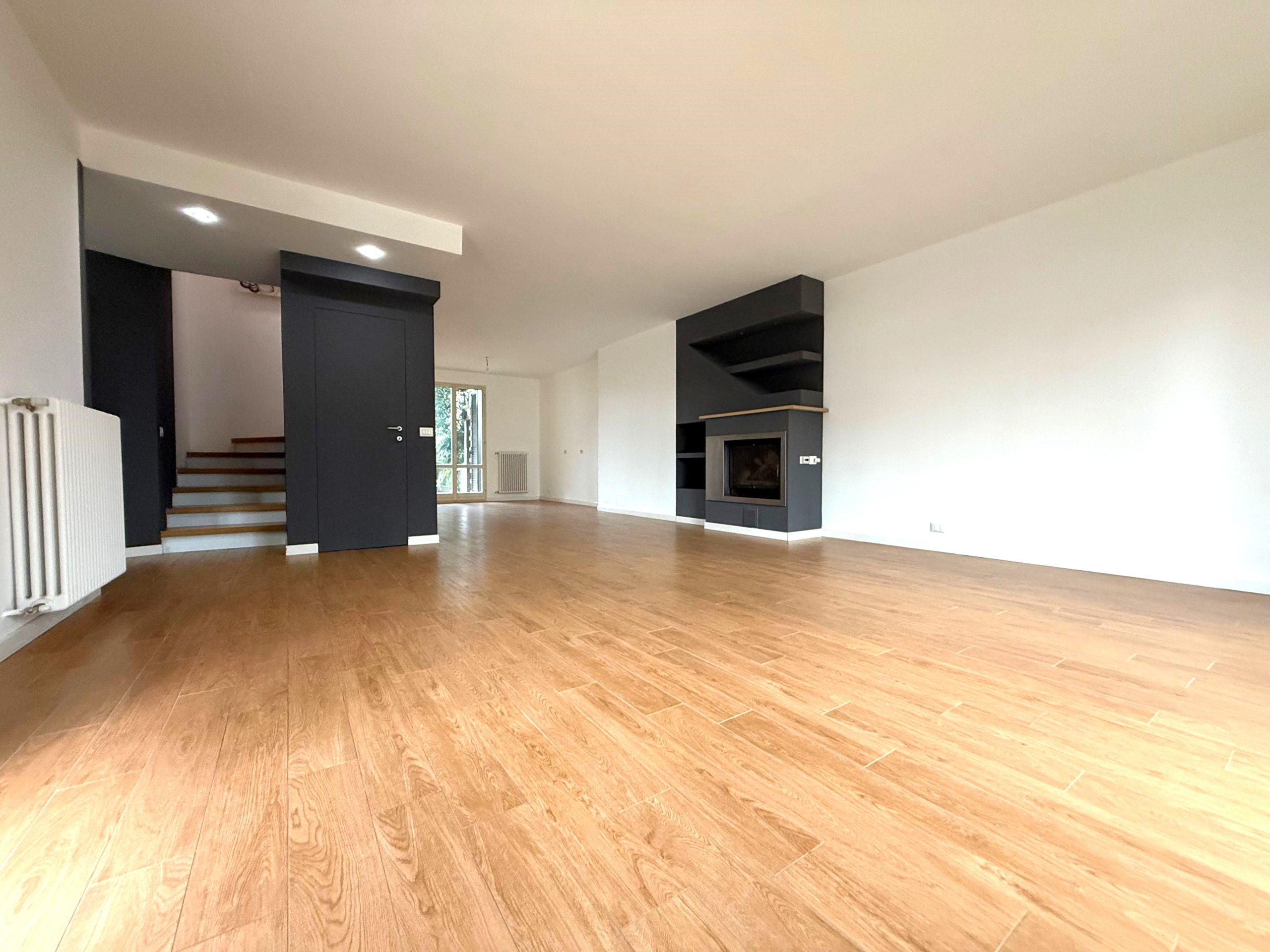 Splendida villa di testa disposta su 2 livelli più lo scantinato. Ampio living con caminetto e portefinestre che si affacciano sul giardino privato, tre camere 3 bagni.