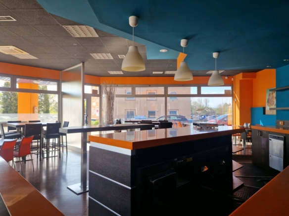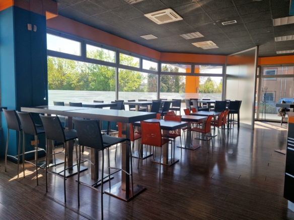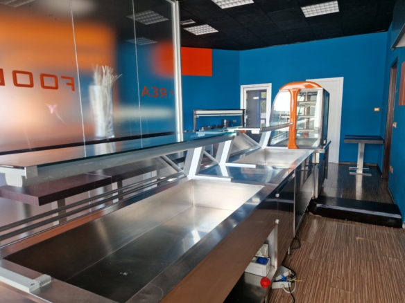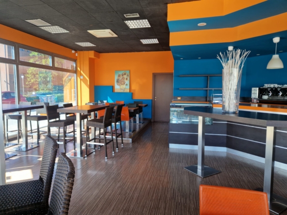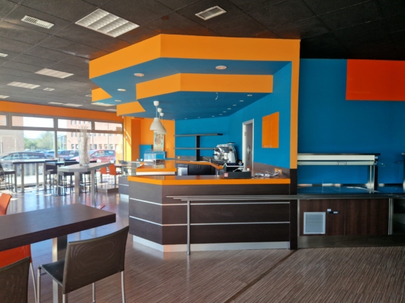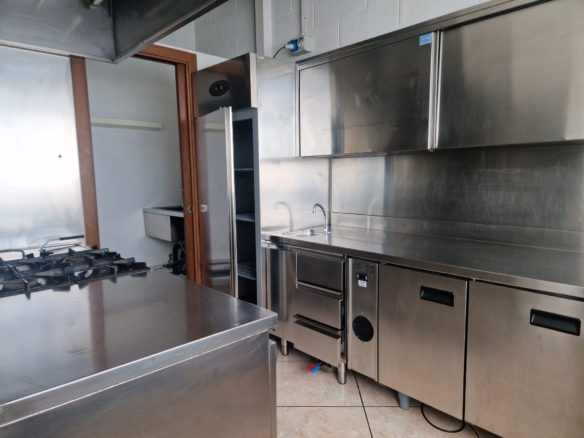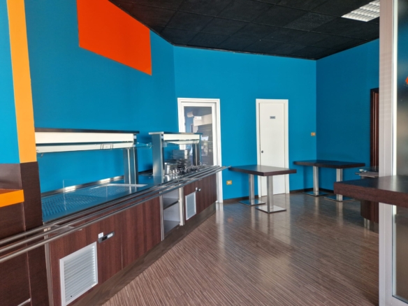 Il ristorante si compone di un’ampia zona adibita a tavoli e sedie per circa 70/80 coperti, con il bancone di somministrazione delle bevande a vista e zona cucina adibita a self-service: completano la proprietà una sala privè con la possibilità di ricavare altri 20 coperti e una seconda cucina attrezzata per la preparazione degli alimenti, doppio bagno e doppio ripostiglio.